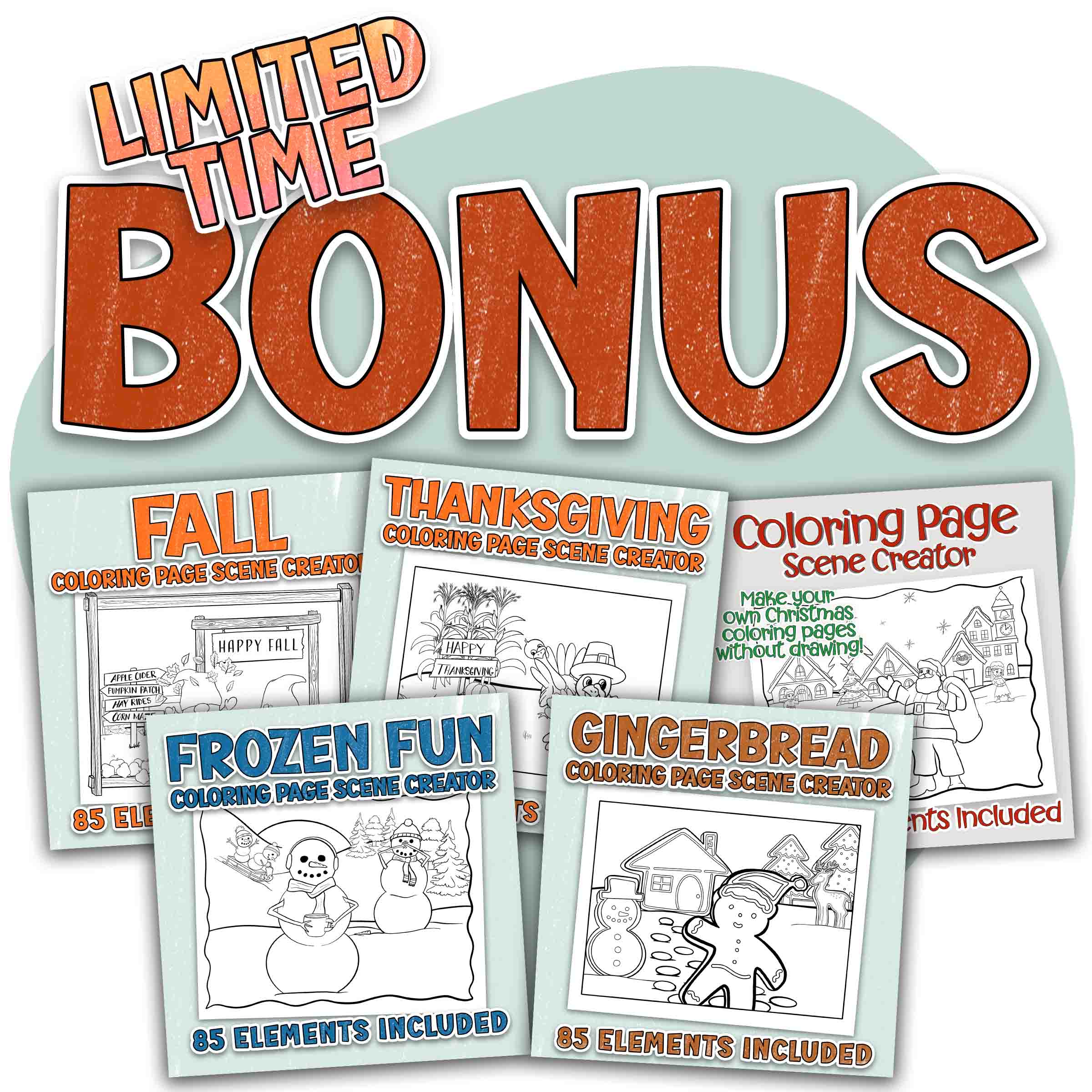 A: Each month, you'll receive a variety of hand-drawn elements including frames, backgrounds, objects, and main subjects, all designed to help you create unique and engaging coloring pages and so much more. Minimum $118 worth of graphics each month.